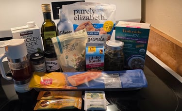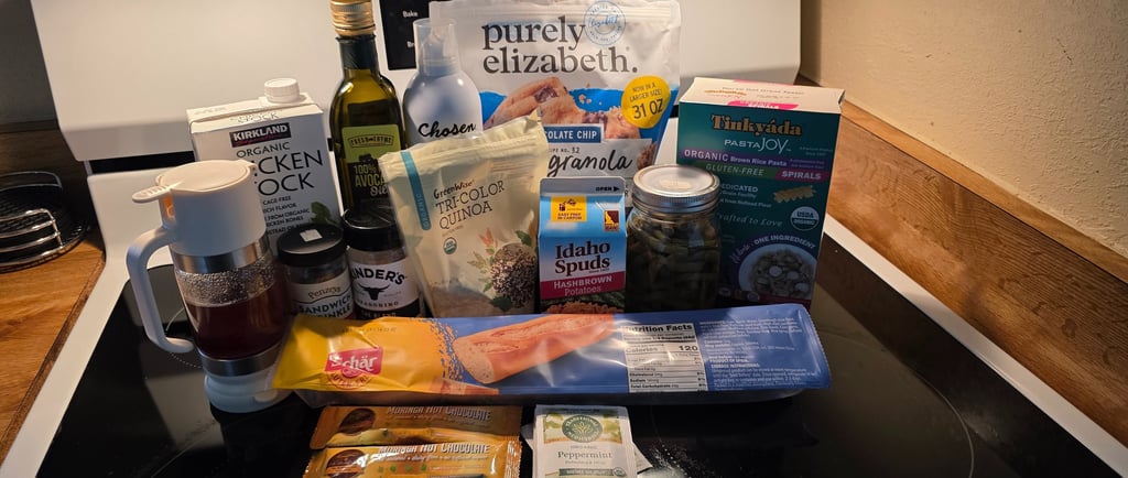 You’ll notice there aren’t a lot of “ready-to-eat” foods here. That’s because this box is built to support cooking, not snacking. With these basics, I can walk into almost any grocery store, buy a few fresh items, and make food that feels normal — not like a compromise.
